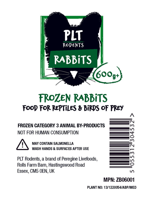 More on the way!This 600g+ pack of PLT Frozen Rabbit is ideal for large snakes, birds of prey, and other exotic pets. With its convenient frozen form, it's easy to...