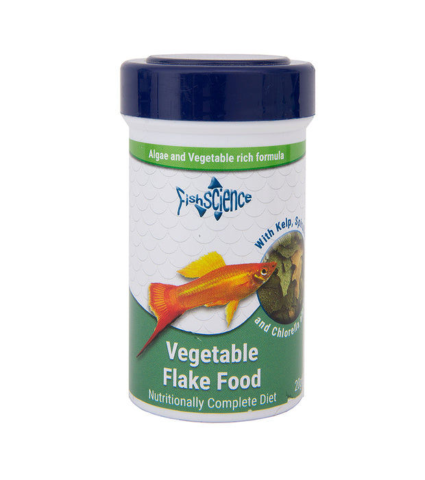 Our Fish Science Vegetable Flake is a complete and balanced flake food, perfect for all algae and plant eating fish. Made with a nutrient-rich blend of Kelp, Spirulina, Chlorella, peas, spinach, and paprika, this food promotes digestion and longevity with the addition of insect meal. Boost your fish's health with natural ingredients such as Beta Glucans, garlic, and omega 3 oils, while enhancing their vibrant color with Spirulina and Chlorella algae.
