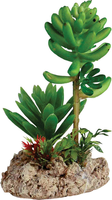 This artificial succulent plant with a rock base has the perfect size of 7.5x6x12cm for any terrarium setup. The realistic design adds a touch of greenery to any setup without any maintenance required. Enjoy the beauty and benefits of a desert plant without the hassle.