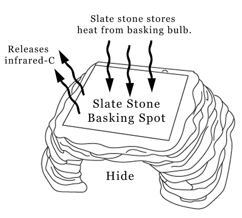 In the wild, reptiles love to bask on rocks and stones as it provides them with a great opportunity to absorb infrared A & B (from the sunlight) and infrared C from the stone releasing stored heat. Our Zen Cave features a slatestone basking spot on top. This unique feature mimics nature by absorbing heat from the basking bulb and releasing the heat as infrared C.